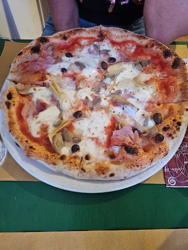 Read moreConsigliato dal proprietario di casa ma decisamente non consiglieremmo noi ad altri. All’arrivo, con prenotazione, la cameriera (nonostante fossimo davanti a lei) ha continuato a messaggiare beatamente al cell. Il tavolo che era prenotato, non era pronto e sembrava dovesse farci un favore a prepararcelo. Attesa di 20’ per prendere l’ordine. Piove ma nessuno che si offra di spostare il tavolo o per lo meno sentire se stavamo bene o che so, se con qualche prenotazione tardiva, potessimo essere spostati dentro (dentro era mezzo vuoto al momento). Passi tutto, speri che l’arrivo della pizza risolleverà l’umore. Risultato: pizza quasi completamente bruciata. Abbiamo mangiato quel che era mangiabile, in fretta e furia, poiché stanchi dal lungo viaggio e siamo scappati a riposare. Due stelle solamente per il cameriere giovane che ci ha servito ed è stato...