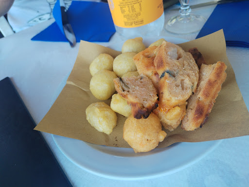Read moreAbbiamo preso 3 antipasti, di cui 2 antipasti di mare e 1 sautè di cozze e vongole. Su quest'ultimo nulla da dire, nella media, ma il polpo dall'antipasto di mare era totalmente insapore e di una consistenza strana (come se non fosse fresco bensì congelato). A seguire abbiamo preso un fritto misto (che non commento perché era pessimo, gommoso, estremamente intriso di olio e anche stavolta i gamberi sembravano congelati). Il pesce spada e il trancio di tonno (quest'ultimo proposto dalla cameriera al momento dell'ordine) erano insapore. Il "trancio di tonno" a nostro parere non era proprio tonno, bensì verdesca sia per forma, colore e sapore (che di tutto sapeva fuorché di tonno). Insieme al tonno sono state ordinate delle verdure grigliate, mai arrivate al tavolo al momento del conto abbiamo chiesto di non pagarle sentendoci rispondere presumo da quello che è il proprietario del locale "potevate chiedermelo mi avete visto che ero li" con fare abbastanza stizzito, chiamando un'altra signora per farci pagare che borbottando non poco ha tolto le verdure mai mangiate dal conto dicendo che le verdure c'erano anche nel piatto di chi non ha scelto il contorno di verdure (cioè "l'insalata" visibile in foto). La tempistica del servizio non ci è stata chiara fin dall'inizio quando abbiamo dovuto chiedere per la seconda volta il vino dopo aver praticamente finito l'antipasto, a mio parere una cosa molto grave. Quasi a fine cena un cliente del locale si è messo a fumare alle nostre spalle dopo avergli chiesto di spostarsi poiché mentre mangiavamo respiravamo pure il suo fumo (chi non fuma sa quanto possa essere fastidioso) ha continuato indisturbato a fumare poco lontano dove il vento comunque portava il fumo sia al nostro tavolo che dentro il ristorante vero e proprio dove vengono preparate anche le pizze (noi eravamo nella veranda al piano sopra davanti all'ingresso principale del ristorante). Dopo aver fatto notare al proprietario l'accaduto (lo stesso che ci ha risposto scocciato che potevamo chiederle le verdure) ci ha detto di "non preoccuparci" non prendendo assolutamente provvedimenti in merito. Sicuramente è un ristorante dove non torneremo mai più, e un consiglio rivolto ai gestori un...