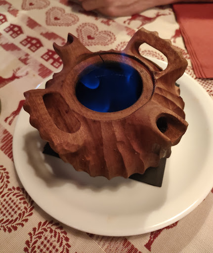 Viste le ottime recensioni ed il consiglio di un amico, abbiamo deciso di cenare qui. Il proprietario Gianluca si è subito rivelato un uomo dal cuore d’oro. Ci ha coccolato con un aperitivo (prosecco superbo autoctono, patatine con patate di montagna davvero superbe e formaggio) mostrandoci il locale che è davvero caratteristico. Siamo poi passati all cena. Che dire, cena spettacolare! Tagliere di salumi e formaggi locali accuratamente selezionati da Gianluca in persona (e si nota!) di qualità davvero elevata. Siamo poi passati al primo: tagliolini al ragù di capriolo (molto buono) e gnocchi di castagne alla fonduta (ovviamente buonissimo anche questo piatto). Abbiamo poi preso una panna cotta al latte di capra, davvero delicata. Tutto accompagnato da un ottimo Pinot nero. Abbiamo terminato la cena con la tipica grolla dell’amicizia (secondo la tradizione valdostana va bevuto tutto il contenuto senza poggiarla, altrimenti porta sfortuna!) ed un genepì di produzione propria. Complessivamente bellissima serata, porzioni abbondanti e cibo di qualità elevata. Rapporto qualità/prezzo più che onesto. Stra-consigliato se vi trovate ad Aosta e dintorni. Unico consiglio è di prenotare per tempo, dato che il locale è spesso al completo di venerdì, sabato e domenica, a riprova...