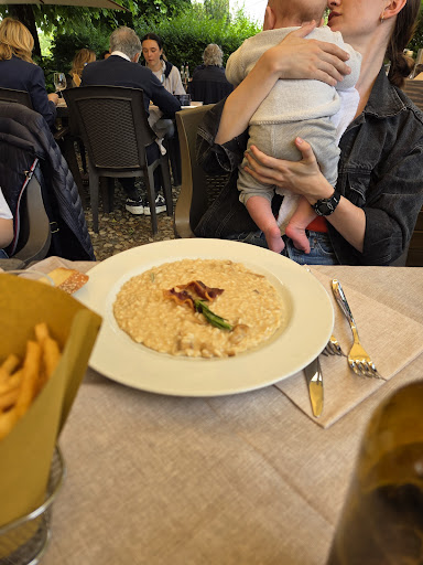 Amazing restaurant the small town of morimondo is always a nice place to be. The restaurant just a few mettersi away from the famous abby has a great view of the nearby hills. The food is just amazing. Cold cuts,local cheeses and homemade giardiniera make you feel at home. The risotto and pasta dishes are great and a throwback to local historical local cuisine. The meat is top quality and the grilled coppa is a must try accompanied by local seasona vegetables. What better way to end you meal than a nice tiramisù, the homemade mascarpone cream will leave...