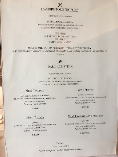 Il cibo ottimo, i sapori e i profumi di un agriturismo tradizionale che si affaccia alla modernità, mantenendo i prodotti genuini e con una lavorazione frutto di anni di migliorie, affrontando piatti nuovi e nostrani; Una stella di merito extra va sicuramente alla bontà e attenzione maniacale che viene attribuita alla carne, alla sua frollatura e cottura.