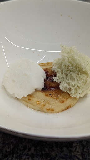 Tra i piatti che ho provato, desidero sottolineare un dolce particolarmente memorabile: il gelato al latte di capra con una nota salata in contrasto con la dolcezza. Questa combinazione inusuale è stata un vero piacere per il palato, offrendo un'esplosione di sapori unici e una conclusione perfetta per un pasto indimenticabile.