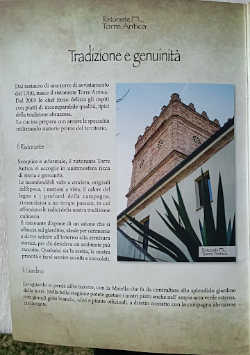 Read moreUn ristorante a dir poco paradisiaco! L'estate arrivando intorno alle 19:30 e possibile mangiare sul prato all'aperto degustando ottime prelibatezze e accompagnati dal tramonto con una vista panoramica a dir poco fantastica da un lato e dall'altro la magica vista della torre che da il nome al locale! All'interno è possibile sia un tavolo nella veranda di legno o nelle splendide arcate a mattoncini che donano un clima romantico e rustico al locale. Il menù che preferisco e consiglio , indipendentemente dal fatto che la cucina è eccellente in ogni cosa, è l'antipasto torre antica che prevede antipasti caldi e freddi con ricette uniche (come la gustosissima cipollata al sugo) e poi arrosticini: tra i più buoni che si possano mangiare in abruzzo! Cottura eccellente e sapore infinitamente buono! Come non amare un posto così magico immerso un un paesaggio di campagna , che permette oltretutto di pernottare e soprattutto degno della cordialità e della gentilezza di tutto il personale (umile , accogliente e disponibilissimo) e del proprietario Francesco che è il valore aggiunto poiché sempre pronto ad aiutare in qualsiasi momento. Consigliatissimo per qualsiasi tipo di evento e per la possibilità di passare bei momenti in coppia o con le amicizie! Il TOP ! Chi lo prova come me , ci tornerà sempre con...
