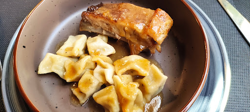 Read moreDa anni una certezza di qualità, con un'interpretazione originale ma rispettosa della cucina locale. Oggi mi sono fermato per un pasto veloce e mi hanno proposto degli zlikrofi (ravioli di patate ed erbe) con sugo di arrosto accompagnati da costicine di maiale stufate.I ravioli erano molto piacevoli, le erbe del ripieno si sposavano benissimo con il sugo dell'arrosto, mentre le costocine si disfavano in bocca senza essere grasse: insomma, un piatto squisito. Inoltre, mentre aspettavo che mi preparassero gli zlikrofi, il cuoco ha voluto offrirmi una mezza porzione decisamente abbondante di ottime penne con sugo di selvaggina, che comprendevano anche dei genorosi pezzi di cinghiale stufato. Acqua e caffè per un totale di 16€. Prezzo onestissimo per un pranzo...