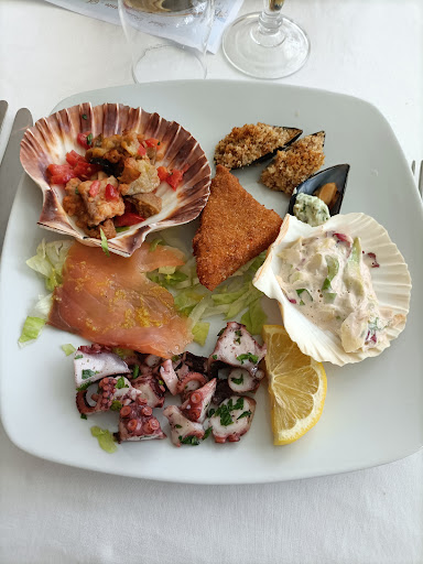 Read moreMetto una stella perché è il minimo, stato stasera a cena con la mia famiglia. Mangiato antipasto di mare e riso alla pescatora. L'antipasto era inqualificabile: polpo comprato del vasetto, cocktail di gamberi con 5 gamberetti dalla dimensione di mezzo centimetro e della peggior qualità, salmone affumicato classico nulla da dire, spada scottato che sapeva solo di limone, probabilmente usato per coprire il sapore di vecchio del pesce. Il riso era completamente slegato ed asciutto, crudo ed il pesce era lo stesso polpo confezionato dell'antipasto con l'aggiunta di qualche cozza anch'esse confezionate e di qualche mini gambero. L'unica cosa papabile è stata forse il sorbetto (probabilmente comprato) ed il vino. Prezzo totale :100€ in quattro altamente esagerato valutando che mia sorella ha preso solo l'antipasto. Accoglienza più che fredda e già dall'inizio quando il cameriere ci ha detto il menù a voce si respirava un aria tesa e di assoluto menefreghismo per il cliente. L'unica "gioia" della serata sono stati i sorrisi del cameriere più giovane che ci ha portato i dolci e chiesto come andasse. Altamente sconsigliati, diffidate delle numerose recensione positive, probabilmente redatte da persone che non hanno idea di cosa...