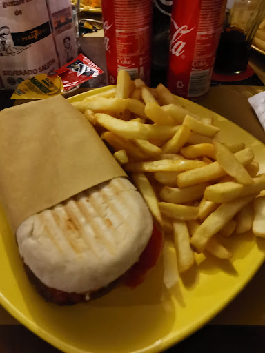 wir sind hier vorbeigekommen weil wir keine Lust auf Pizza hatten. das Restaurant wirkt sehr klein an der Ecke aber Mann kann auch im Keller sitzen und sich von einer sehr angenehmen Musik aus den 70 verwöhnen lassen. das Essen war der Wahnsinn, meine Tochter Nachos und gefüllte jalapeños meine Verlobte auch und ich ich habe einen Burger gegessen. geschmacklich sehr gut abgestimmt und reichlich. sehe freundliche Bedienung und eine sehr schöne Western Atmosphäre und viele kleine Motorräder zum ansehen. echt super hier.
