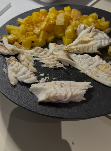 It was at the beginning (7.30 p.m.) very quiet and just a few customers were already there. We got a nice table and the waiter was okay. Not really friendly but also not to grumpy. We ordered our food and then (10minutes later) another couple showed up (2 Italians). They welcomed them really friendly and they got drinks before us. They got also some bread for a starter. At the beginning, me and my boyfriend though that they might ordered it so we paid not anymore attention to it. After a short time we got our starter, which was really fresh fish and nice!! - no front against the food :) Then we saw that each table got also some bread at the beginning like the other 2 Italians and we wondered why we don't get some.. Even if it was empty when we arrived. We ordered a fish for 2 and they opend it in front of us which was nice but then we saw a second couple where another waiter explained all how they cooked it and he puts also some oil on it and stuff.