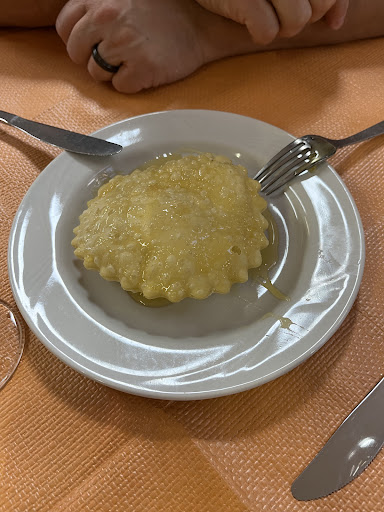 we arrived late, because in September ( off-season) they close the kitchen at 9:30 - which we didn't expect. but the staff was very welcoming asking the kitchen to open after their closing time. thanks a lot for that! we got some amazing calamari fritti, a grilled-to-perfection Dorade (this actually put this fish back on my culinary horizon. we like it salty though - so keep that in mind). and some scampi. i should have ordered the tiramisu with only one spoon as my girlfriend did enjoy it a bit too much. the restaurant is a bit brightly lit - changing that to some incandescent light bulbs would make it a lot more cozy, but that's just our taste.
