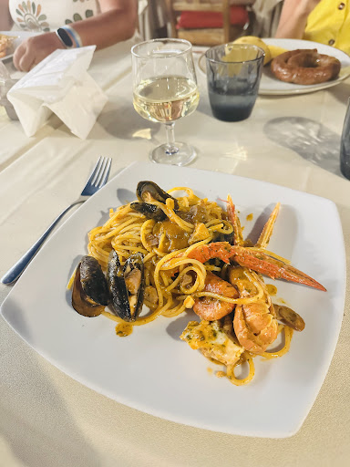 Read moreDopo una giornata di mare, io e la mia compagnia abbiamo cenato in questo ristorante. Si tratta di un ristorante che serve i clienti previa prenotazione e non, nonché d'asporto. Abbiamo mangiato tutti la pizza: io ho ordinato una pizza con panna e salmone. LA PIZZA, metto in evidenza per evitare fraintendimenti, era certamente sormontata da ingredienti di ottima qualità; per quanto riguarda il salmone era probabilmente pescato in giornata, molto buono. Tuttavia l'impasto cotto, che forse è dire poco, mi ha lasciato decisamente desiderare, poiché la sua consistenza e la sua secchezza mi vedono obbligato a fare un terribile paragone con il PANE CARASAU. Attenzione: NON sono stato l'unico a notare la problematica all'interno della mia compagnia. Per tali motivi ho deciso di dare 3 stelle al cibo, nonostante fossi tentato di darne 4, vista l'ENORME scelta che offre il menù tra pizze, antipasti, primi, secondi, contorni, dessert, bevande ecc.; faccio dunque lode per questo fatto.