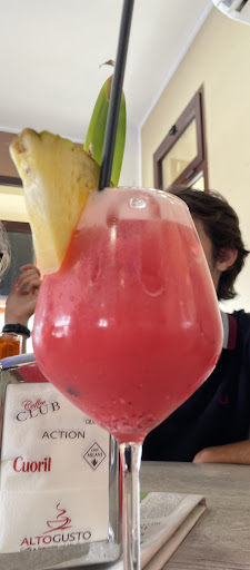 Siamo venuti qualche giorno fa in questo bar, situato nella via principale, con tanti posti a sedere sia all’esterno che all’interno. Ci sediamo e prendiamo 2 spritz, un analcolico, una birra e una cocacola. Io, avendo preso l’analcolico, mi faccio consigliare la miscela da una dipendente e lei mi consiglia un misto fra fragola e ananas (riportata la foto sotto). Degusto l’analcolico e lo reputo buonissimo, tanto che ne faccio nota. Infine andiamo a pagare e rimango sbalordita dal prezzo. L’analcolico costava lo stesso tanto dei due alcolici, a 5 euro. Insomma prezzi onestissimi se non economici e luogo molto giovanile e...