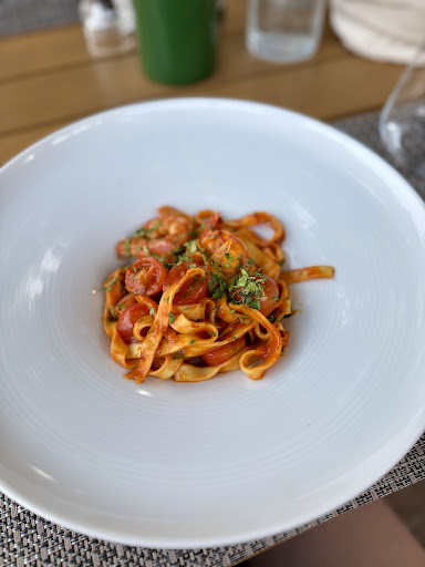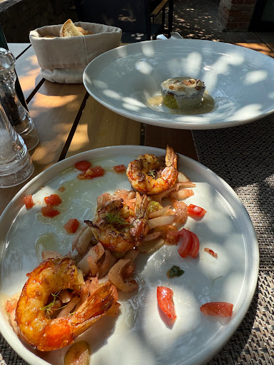 100/10. My partner and I had one of the best meals of our life… and we eat a lot. Firstly, the service was wonderful. The waiting team took great care to make us feel looked after, to suggest and explain some wine pairings, and to put up with our many requests for a top up of bread. Second, the food was gorgeous. We had the minestrone soup, which was unlike any we’d previously tried, wild boar ravioli, and the T bone steak. Desserts were excellent too. The wine we drank was grown on site - the 13 and the 15- and was a delight. We both thought they tasted a little like communion wine (in a very good way). Finally, all the above is enjoyed with incredible views of the Tuscan countryside and under a canopy of vines and string beans. Couldn’t recommend enough. Also the chairs...
