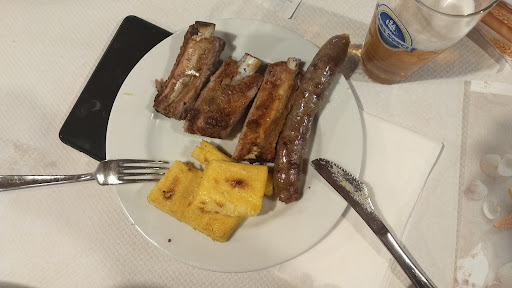 CIBO: ottimo. Abbiamo ordinato un piatto di costa, due di costa-salsiccia, patate fritte e verdure pastellate. La costa e la salsiccia erano buonissime, salate al punto giusto mentre le patate erano sciape. Naturalmente le abbiamo salate con la saliera presente sul tavolo che avrebbe bisogno di essere cambiata in quanto è leggermente nera.