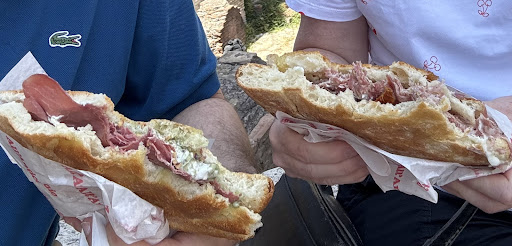 All’antico Vinaio, Rome, Italy. June 26, 2024. Many other restaurants in this square/piazza, but most were empty compared to the out-the-door and around-the-corner queue for this place. I had to ask some people who were waiting in line what the big deal is? “The best sandwich in Rome” came the answer. Well, we just had to find out for ourselves, and went to the end of the line. It moved quickly enough, and gave us enough time to click the QR code posted outside for the menu. A very innovative menu with both classic sandwiches and also unique choices with well thought-out combinations of meats and ingredients. I opted for the LA TRICOLORE, which consisted of Beef carpaccio, cream of pistachio, stracciatella cheese, chopped hazelnuts (€11.-) It was delicious. The bread was very very fresh, the sandwich size and amount of meat was very generous, and the ingredients worked very well together. There is no seating (take-out only), so take your sandwich to around the back of the Pantheon, there are plenty of people sitting there on the wall eating their sandwiches. Was it the best sandwich in Rome? Maybe. It was good enough that I would stand in line to eat...