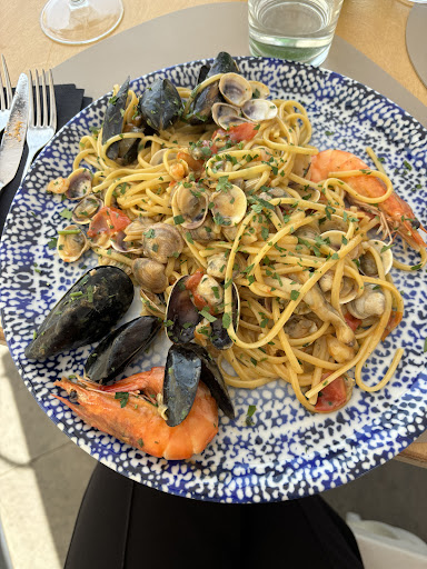 Read moreModern decor and a location to die for, with very reasonably priced meals (fixed lunch 2 courses 8€ and a la carte di net). Right by the sea with a view to the islands of Ischia and Procida and Capo Miseno. Just would like more options for vegetarians (only one starter and the sides - everything else has fish or meat) Only accessible through a member so not open to general...