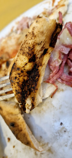 • The dough was above average in taste, but not exceptional. There was excessive charring at the bottom. Unfortunately, the toppings were underwhelming: Artichokes and mushrooms were canned. Artichokes in particular had a zesty flavor which masks their true flavor. The tomato sauce tasted somewhat like a soup: unnaturally smooth and fluid with ketchup like taste. The meat topping was also pretty average in taste.