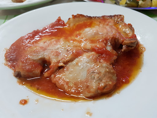 Maccheroni alla Sorrentina - €4.00 Steak (Pork) Pizzaiola - €4.50 1/2 Liter of Wine - €2.50 Contorno - ? (Bo? - Price not listed on menu)