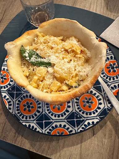 Read moreAbbiamo pranzato domenica 12 novembre in due dopo aver prenotato. Subito ordiniamo 1 fettuccine boscaiola ed 1 spaghetto nerano. Dopo più di 1 ora dall'ordine,dopo le nostre rimostranze,x farsi perdonare della lunga attesa ci offrono delle montanarine (unica cosa squisita che mangeremo).Dopo tanta attesa arrivano prima i secondi...e dopo aver protestato civilmente,vengono riportati via in attesa dei primi che,al fine arrivano ma:fettuccine alla boscaiola senza funghi e spaghetti alla nerano con zucchine bollite. Due forchettate e piatti mandati indietro. I due misti di carne alla brace sono arrivati tiepidi,poiché riscaldati visto che erano stati portati prima dei secondi,quindi abbiamo dovuto ingoiare velocemente x evitare che la carne si freddasse velocemente e risultasse definitivamente immangiabile. Lo staff si è scusato ed il propietario gentilmente ci ha offerto dolce,a dire il vero la caprese era durissima,e l'amaro. La certezza è che il piatto cucinato non sia affar loro ....la sensazione è che forse se avessimo scelto le pizze ce ne saremmo andati...
