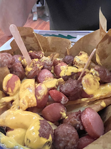 Read moreAbbiamo ordinato solo questo antipasto perché era enorme. Fortunatamente il cameriere ci aveva avvertito prima di evitare di ordinare altro, perché difficilmente dopo hai fame se lo mangi in due. Si chiama Vesuvio ed è un enorme piatto di patatine, salsicce, polpette e formaggio. Abbiamo gradito anche se alla lunga stufa un po'. Servizio molto veloce. Grande vastità di birre, personale molto gentile e disponibile. Il locale è carino, ma il sabato sera è difficile parcheggiare, tuttavia ci sono dei parcheggiatori del locale, con tanto di pettorina, che ti aiutano, noi cmq abbiamo preferito parcheggiare nel parcheggio a fine strada che era convenzionato con il locale, 2€ per 3 ore, decisamente meglio che l'inferno in strada. Il bagno non era pulitissimo, ma non per colpa loro, la gente è incivile e butta la carta e fazzoletti a terra. Di sabato sera è piuttosto affollato e per un tavolo da due abbiamo aspettato almeno 20 min, quindi lo sconsiglio a gruppi numerosi a meno che non si vada presto o non ci si armi di molta pazienza. Il locale accetta anche la carta American Express per...
