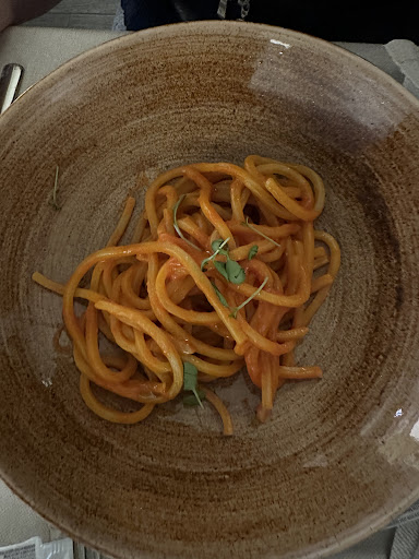 Pictures show the food we got. The spaghetti with tomato sauce cost 15 euros and clearly came with approximately 2 bites of spaghetti. To justify that price, that better be the best 2 bites of spaghetti in the entirety of Italy but it was also extremely far from that.
