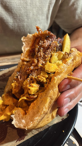 Read moreHamburgeria di ottima qualità, consigliatissima per chi ama i panini ricchi e gustosi! Le porzioni sono abbondanti, i prodotti utilizzati freschi e ben cucinati. I prezzi sono veramente molto bassi, ottimi ad oggi. Il panino era succulento,una bomba di gusto! Anche le patatine con cheddar e würstel erano davvero golose. Il locale è pulito e accogliente, forse un po’ piccolo, ma molto alla mano. Atmosfera informale e piacevole. I camerieri sono cordiali e disponibili. Unico piccolo appunto: il locale può risultare un po’ rumoroso, soprattutto per la normale presenza di famiglie con bambini. In sintesi: cibo ottimo, personale gentile e ambiente amichevole. Sicuramente un posto in cui tornare e da consigliare a chi ama gli hamburger fatti come si deve! Presente il posto auto non...