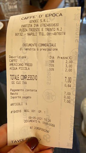 Read more€13 for two coffees and two sfogliatellas. This is expensive and the quality of the coffee is mediocre. Waiters will try to dispatch you fast and may seem rude. No courtesy at all. The positive side is the local viennoiserie, sfogliatellas are great. This place might look cool and cozy, but it's better to avoid it. You should be drinking better coffee than this in Italy. I'll give them 2 stars because it's not the worst place in Napoli and I don't want to exaggerate, but seriously there are better...