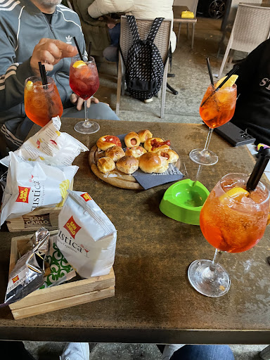 Sono stato in questo locale 2 giorni fa con altri 7 amici e devo dire che la bellezza della posizione del locale viene annullata dal pessimo servizio offerto . Prezzi eccessivi (7/8€ per una spremuta e un cornetto/pasticcino neanche di chissà quale qualità non li ho pagati nemmeno in aeroporto , oltre al fatto che tutt’ora non mi è chiaro il perché una bottiglia da mezzo litro ordinato al tavolo l’ho pagato 1,50 mentre uno preso davanti la cassa prima di andare via solo 1€ ). Essendo turisti è stato più intelligente pagare senza porsi troppe domande…sappiate che i clienti non sono ingenui , semplicemente nessuno in vacanza ha voglia di mettersi a discutere per 1/2€ . Si vive meglio fingendosi stupidi. Concludiamo in bellezza con la sgarbatezza del cameriere visibilmente scocciato ad ogni nostra richiesta è palese che con un tavolo da 8 persone ci possa essere confusione con gli ordini ma questo non giustifica un tale...
