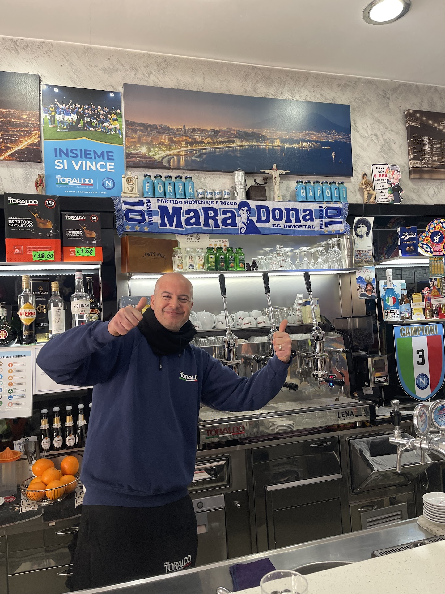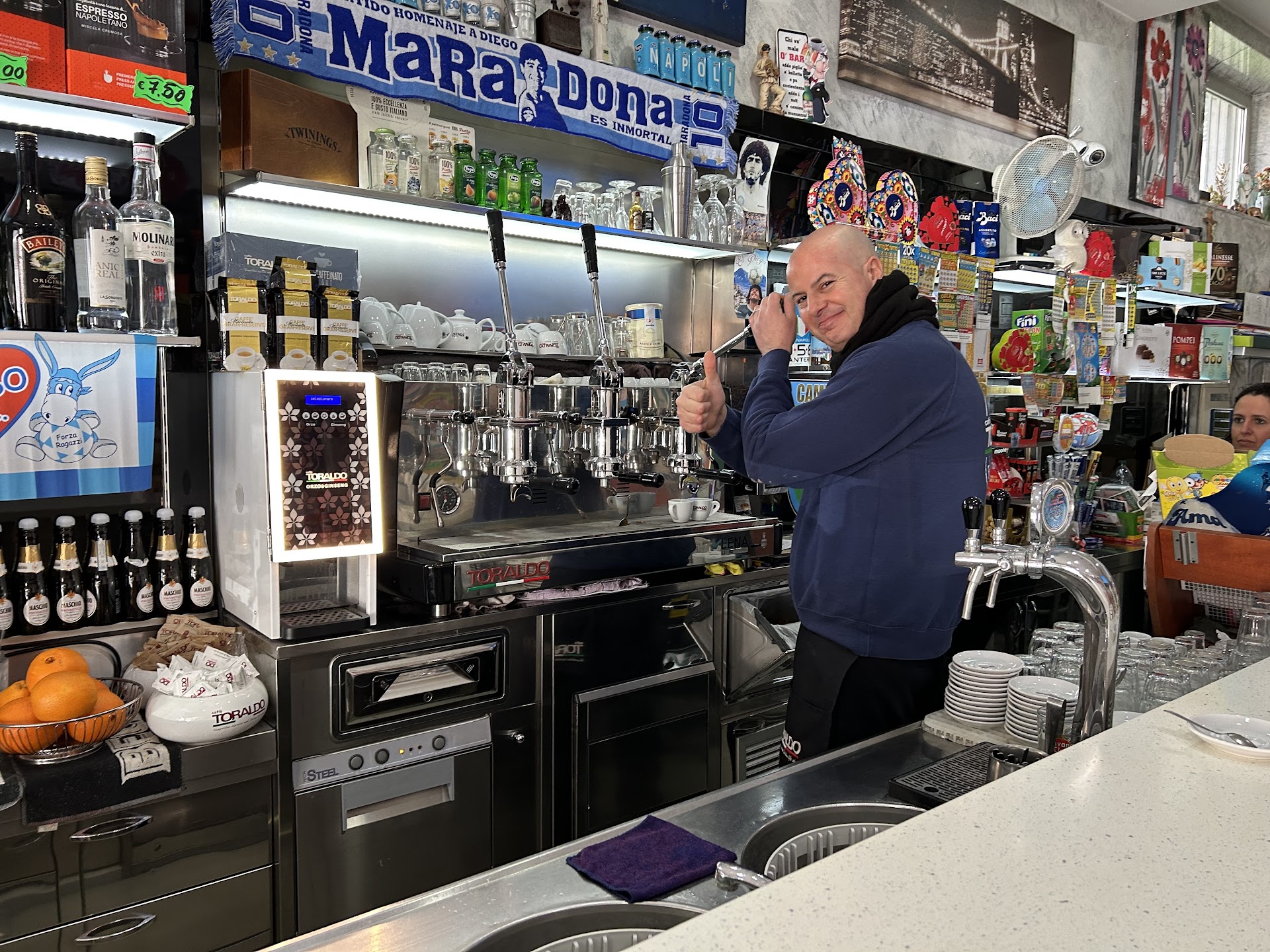 Salvatore is a man with a good heart. He is a hospitality professional who speaks English and makes interesting conversation. His place is very clean and if you order an authentic Italian coffee and a pastry, you can also experience the everyday life of the local people, who drop in for a quick coffee. Salvatore likes family, football, shipping and Italian history. I enjoyed our conversations. I was compelled to return the next day for coffee, tea and pizza. Salvatore's wife, Fabiana adds gentle balance to the experience. It's said that we, eventually, get the face that we deserve, so I include a picture, unedited, which conveys the...