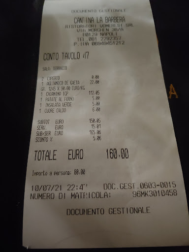 Read moreThis has been a wonderful experience on every level. The steak and beef: excellent quality and taste (and I'm Belgian so trust me ;p ), same for the pasta dishes - all while being made with subtlety. Good beer and fine wine. Additionally, the desserts are absolutely exquisite. Not to forget the staff: super friendly, kind and helpful. The cosy and warm interior only adds to the experience. This is definitely a gastronomic restaurant, so it is more expensive, because you get the finest food and ingredients. We would like to thank Cantina La Barbera for making our last evening in this city meravigliosa. Best restaurant in Napoli, hands down. What are you...