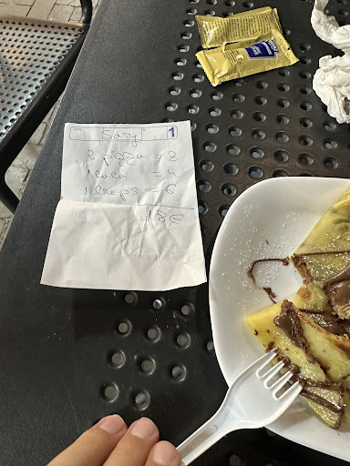 Read moreSono rimasta delusa da questo posto. La donna che ci ha serviti era simpatica ma quando ho chiesto una crostatina alla frutta non l'avevano, poi ho chiesto un secondo dolce scritto nel menù e non avevano nemmeno quello. Allora ho preso un Krapfen "ripieno" di nutella e alla fine non era ripieno PER NIENTE, aveva solo una goccia di nutella in alto che lo faceva sembrare traboccante di cioccolato ma poi dentro era totalmente asciutto. E l'ho pure pagato caro! Poi il mio amico ha chiesto una peroni lemon e non l'avevano... Personalmente non sopporto i locali con un menu ricchissimo e che poi concretamente hanno la metà delle cose che ci stanno scritte. Unica nota positiva del locale è la posizione, c'è una bella visuale e le poltrone-dondolo su cui sedersi sono molto comode (e originali). Ma per il resto non...
