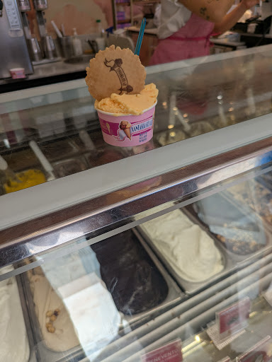 Read moreUna stella obbligatoria che ne vale zero. Più che un gelato era un frappè, sciolto al punto da gocciolare ancora prima di assaggiarlo. La commessa, scorbutica e annoiata, nel comporre un semplice cono con due microscopiche palline di gelato, ha rotto la cialda e ha cercato di coprire il danno coprendolo con un dischetto di cialda, quello che si mette sopra le palline di gelato. Ho dovuto farmi dare una coppetta per versarci il gelato che oltre a colare stava per cadere a terra, facendo notare che il cono era stato spezzato. Mi è stata data quindi la coppetta dove si infine riversato il gelato, già quasi liquido oltretutto. Per quanto riguarda il gusto, ho preso un semplice cioccolato e pistacchio di Sicilia, quest'ultimo non solo non sapeva di pistacchio di Sicilia ma nemmeno di pistacchio. Forse bisognerebbe insegnare a chi compone i coni che i gusti più consistenti come il cioccolato vanno messi in basso, e che le palline di gelato vanno poggiate dolcemente sul...
