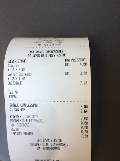 If I could've, I would've given 0 star. Worst service I've ever experienced, the staff was rude, made us wait even though we were amongst the first clients of the evening. I wish I could say that the food was mid but it would give it too much credit. We had the caprese salad and it was nothing short of disgusting, 12 euros for an unripe tomato ( in the middle of July in Naples mind you) and a squishy, watery mozzarella, probably the worst I've ever eaten. It was quite expensive for the city, especially when you consider the quality of both the food and the service, 2,50€ per person for the service really was the cherry on top. Run, I'm pretty sure that ant other restaurant in the area...