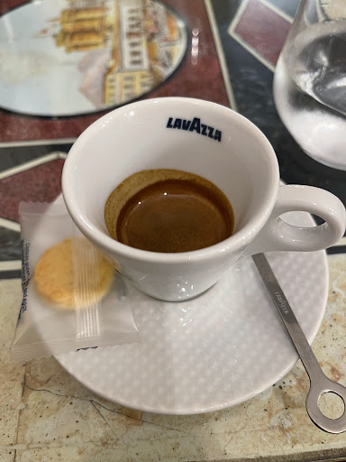 I was quite disappointed with my visit to this Caffè. I had two espressos, each costing €4 (Spoiler: It was not made from beans of gold). While the coffee was fine – just a standard Lavazza – it was far from exceptional and certainly not worth the premium price. You’d expect something more special at that rate, but instead it felt like I was paying for the name, not the quality. To make things worse, service was indifferent at best. No one asked if we wanted anything else, and the staff didn’t seem particularly welcoming. With the espresso came a cheap industrial cookie – the kind you find in plastic wrap at discount hotels. It felt almost insulting.