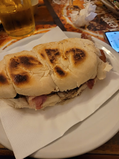 Durante la serata nella saletta privata si è dovuto urlare per sovrastare il volume degli altoparlanti finché finalmente non è finita la partita. Il servizio è stato molto rapido, tra l'ordine e la consegna saranno passati al massimo 10 minuti nonostante fossimo 16 persone. I piatti sul menù sono parecchio cari, il panino speciale che allego in foto il "lollo chicken" costa 11€ e considerando la quantità di ingredienti poco costosi all'interno costa troppo, lo stesso problema lo hanno le patatine che in versione base hanno un costo contenuto ed in linea con altri locali, ma il solo aggiungere il formaggio fuso o la classica salsiccia porta il costo della porzione a 7 euro. L'assortimento di birre alla spina ed in bottiglia è buono ed in linea con i prezzi di altri locali.