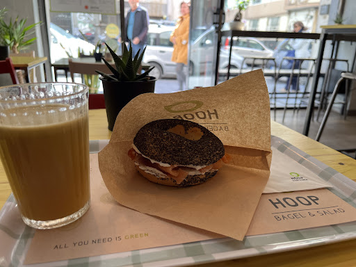 I stopped by hoop this morning right after they opened at 9:00 AM, and what a treat it was! With it being so early, I half-expected a bit of a rushed or impatient vibe, but the staff couldn’t have been more welcoming. They greeted us with smiles and zero hint of annoyance, which set the perfect tone for the day. We ordered two bagels and two drinks, and everything exceeded our expectations. The bagels were fresh, perfectly toasted, and packed with high-quality ingredients—crisp on the outside, soft inside, and the toppings were spot-on. The drinks were equally impressive, with great flavor and a nice touch of care in how they were prepared. It’s clear this place takes pride in what they do, even first thing in the morning. The atmosphere was cozy, and the service was top-notch for such an early hour. If you’re looking for a delicious, hassle-free breakfast, hoop is a must-visit. I’ll definitely be back—five stars...