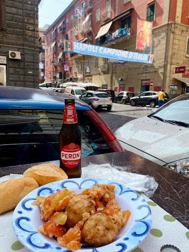 We started with a perfect mix of fried bites: frittata di pasta, crocchette, and more — every bite full of flavor and tradition. Then came the paccheri with seafood and the most delicious fried calamari. All of it washed down with an ice-cold Peroni. Pure life.