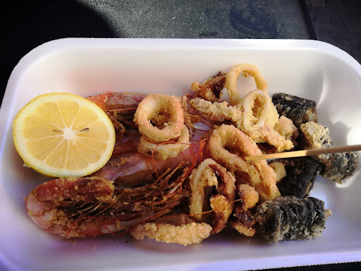 Read moreQuesta è una recensione scritta nel tempo, nel senso che la prima la scrissi 4 anni fa e poi nel corso del tempo l'ho aggiornata. Che dire...a pochi passi dalla stazione centrale una pescheria attrezzata anche alla preparazione di seafood. Tutto a base di pesce, parmigiana di cernia, insalate di patate e polpo, Julienne di seppie e verdure, primi piatti fatti al momento, da asporto o da mangiare sul posto con un rapporto qualità prezzo niente male. Non è un ristorante da 5 stelle ma tutte le stelle non sono solo per l'atmosfera goliardica che Massimo il titolare, riesce a trasmettere quando è in vena ma anche per la qualità dei piatti e per come mangi, una sorta di takeaway con tavolini messi lì, arrangiati, per dire se trovi libero ti siedi e mangi tra la gente in attesa di prendere posto, in mezzo alla strada con questi tavolini messi sul marciapiede, Nella sostanza molto meglio di certi pseudo/ristoranti con nomi altisonanti che attirano turisti e poi fanno il pacco. Qui invece vedi quello che mangi. Ho speso per una bella porzione di frittura di pesce con gamberi, anguille e calamari, due polpette di tonno, due arancini di mare ed una coca cola in barattolo: 11,50 euro. A distanza di tre mesi ci sono ritornato, ho provato i primi piatti, che dire... Troppo buoni! Da tenere come punto di riferimento per piatti a base di pesce a Napoli! E ci ritorno sempre, qualità dei primi sempre ottima e prezzi supercontenuti. I tavolini sono migliorati ma sempre di fortuna supeconsigliato per che è nei pressi della...