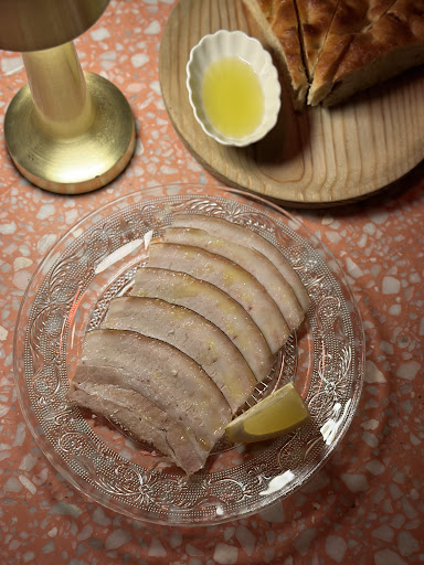 Read moreVia Giovanni Bausan è una delle strade piĂš modaiole di Napoli, è piena di pub, osterie, taverne, ristorantini e baretti. Noi siamo andati da Jus enoteca naturale: si chiama cosĂŹ perchĂŠ tutti i suoi vini sono rigorosamente senza additivi. Da Jus, atmosfera vivace e allegra. Qui si viene soprattutto per bere, dialogare e ascoltare musica. Sorseggiando calici di vino đˇ e cocktail đ¸ vari, puoi assaporare le proposte gastronomiche : non sono molte ma sono tutte particolari e ben cucinate (pollo all'arancia đ, tartare di tonno, gamberi rossi con insalata di carciofi etc). Per noi, Vermentino toscano di 14 gradi, bevuto su ottimi tagliolini con ragĂš di totani, e su buonissimi ravioli fritti ripieni di spinaci; simpatico l'accompagnamento di fette di pane đ da inzuppare in una ciotolina con olio, ovviamente naturale. Un solo dessert disponibile, pan di Spagna con crema di caffè e cioccolato đŤ. Jus ha solo una piccola sala, frequentata da una clientela informale ma signorile. Musica ininterrotta, volume forse un po' alto. Qui la serata scorre piacevolmente, ci siamo divertiti anche se il servizio è stato lento. C'è qualche tavolo all'aperto, prezzi medio-alti, garage a pagamento ...