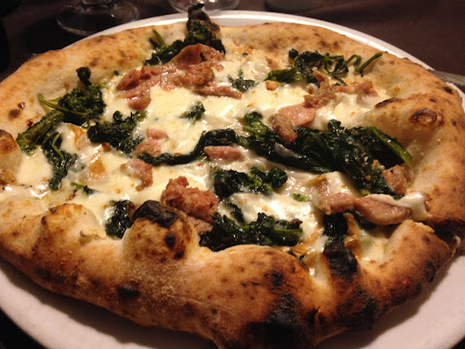 Pizza is an art form as well as a religious experience in Napoli (Naples, Italy), the home of the first pizzeria (Antica Pizzeria Port'Alba - 1830) and where pizza Margherita (named after Queen Margherita of Savoy - circa 1889) was invented at Pizzeria Brandi, both still in existence today. La Brace, "the embers" in Italian, did a decent job on mine, not the best pizza salsiccia e friarielli (sausage and broccoli rabe sauteed in olive oil and garlic) I have had, but far from the worst. Pizzerias, after all, do not exist for long in Naples unless they tend to get it right.