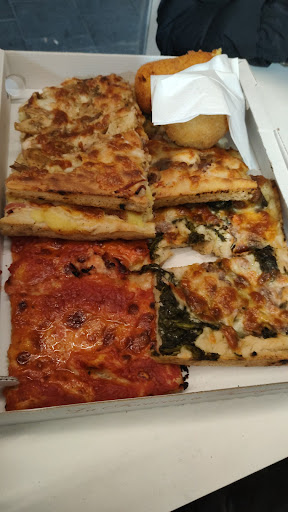 We went there as hungry tourists on a Sunday night around 8pm in September and ate very well. The place is kind of like a take-away with outdoor seating facilities. Inside you order you slice of pizza which comes off a large baking pan. It is served on paper. Prices ranges form 1.50 to about 3 EUR and drinks equally affordable. The place was popular with local families. When you are done you throw your refuse into the appropriate...