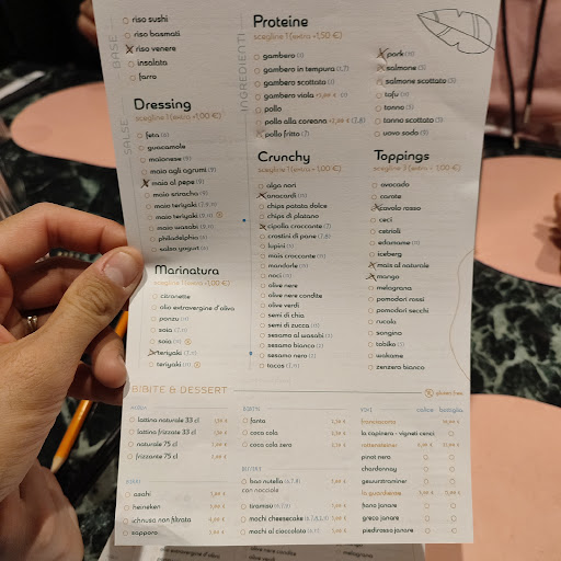 Read moreDevo dire la verità, un pokè così buono e così gustoso non lo avevo mai mangiato in vita mia. Partiamo col raccontare dall’inizio. Entriamo e come norme vigenti ci controllano meticolosamente ad ognuno di noi il green pass , una volta fatto ciò ci fanno accomodare facendoci scegliere il tavolo che più garbavamo . Seduti ci chiedono se volevamo dell’acqua , che ci arriva in splendide bottiglie di vetro personalizzate , dopodiché visioniamo il menù . Antipasti non eccessivi e penso ponderati nel senso che giusti abbinamenti e sapori e non troppi per esagerare. Poi ci sono pokè già composti e poi c’è la pagina in assoluto più bella per i miei occhi : il “componi tu il tuo pokè” . Una sola parola GODURIA. Composto e ordinato il pokè ci arriva in meno di 10 min considerando anche l’antipasto. Arrivato il pokè gli occhi brillano nel vedere quanta abbondanza c’è nel piatto. Finito resta uno stomaco pieno ed una felicità al cuore. Conto giusto e prezzi giustissimi vi consiglio il vino il greco che hanno, veramente ottimo. Ci torneremo volentieri...