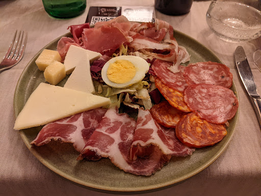 Finished a bad meal in a nice piazza in the touristy part of the university area. Unfortunately the Taverna del cerriglia is one of a few restaurant style eating places in the area. The staff pulled us in with a large menu written in english. The selection looked good and varied, prices were high but they sort of have a cornered market - so we sat down and were immediately bombarded by the waiter with his long list of what we would be having. Much to his surprize we said NO that is not what we want. As he hovered, the outdoor patio of the restaurant was essentially empty, we selected what WE wanted. Turns out they did not really serve that. The risotto with asparagus, came out with peas, because the cook was out of asparagus! The spaghetti with lobster came out with prawns. No apology was offered for either. Unfortunately, as we were both hungry, we chose not to WALK AWAY from the Taverna del cerriglia, but ate the less that stellar tasting meals. Our real issue, other than the BAD FOOD and BAD SERVICE came with the bill. Suddenly our 3 euro house wines had been substantially upgraded in price. There was both a TABLE CHARGE and SERVICE CHARGE - neither of which would have been a problem if the BAD SERVICE and BAD TABLE issues had not been there. The waiter claiming he was the owner/manager would NOT bring me a business card and only reduced the price of the BAD WINE. Overall this was our worst meal experience - I even warned other patrons outside about the waiters SCAM. Obviously I recommend that you DO NOT eat at the Taverna...