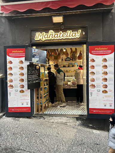 Read moreVery small and easy to miss. Ten steps away from the Maradona mural, Mañatella is kind of hidden in the corner. We were there in the morning, around 9:30, and we were informed that it would take a few minutes to heat it all up. There are no vegetarian options on the menu outside, but you can just tell the kind man behind the corner what he suggests, and you can pick and choose the ingredients; he even let me try a few of them -super nice! We sat outside and waited a couple of minutes. The sandwiches were mind-blowing. Literally the best bread I've tasted in Italy. Super cheap, super tasty, super nice experience. He even recommended a place nearby for great coffee. I love my friend who discovered this place because it was SO WORTH IT! I...
