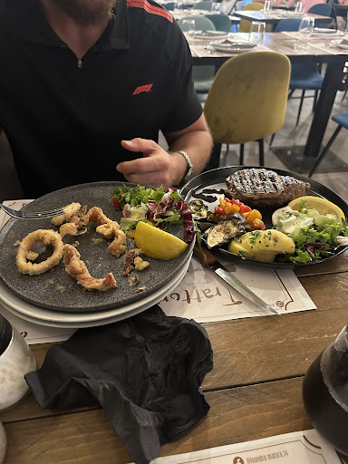 Struggled through a menu that only partly translated and ended up ordering calamari as I saw someone else with it. Had to convince them I wanted it as an appetizer but it still came as a main size portion, rubbery and either from frozen or twice fried as it was not fresh. Im an F1 fan but don't think you're supposed to eat Pirelli tyres!