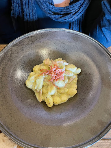 Read moreA Posillipo volevo mangiare pesce, ma non sono riuscito a trovare posto da nessuna parte, ho trovato un tavolo solo in questo locale, dove sono andato con uno spirito abbastanza deluso. Come entro resto inebriato dall’ottima fragranza scelta per profumare l’ambiente. Vado subito in bagno, stile moderno, pulito come fosse il bagno di casa propria. Torno al tavolo e mi soffermo sul locale, ho cominciato a cercare almeno un difetto, ma niente, tutto perfetto, lo stile industriale immerso in un locale a volta scavato nel tufo, lampade retrò appese a fili di corda. Fantastici i bracieri posti al fianco dei tavoli immersi in nicchie ricavate nel mobile che ospita un ampia scelta di vini. Ci è stato offerto un crostino di pane con sopra un carpaccio di carne freschissima, in esplosione di sapore in bocca. Abbiamo proseguitò con un tagliere di salumi, tutti i prodotti era di altissima qualità, ma il formaggio stagionato era di un livello superiore, mai mangiato un formaggio così buono. I primi erano fuori menu, abbiamo preso dei gnocchetti alla crema di pistacchio e delle teorie con funghi porcini e guanciale. Anche qui siamo rimasti stupiti dalla bontà del piatto, specialmente i gnocchetti che offrivano un sapore decisamente originale. Le porzioni non erano esagerate, ma non ci hanno permesso di prendere un secondo, che sicuramente sono il pezzo forte del locale, anche i piatti che ho visto portare a gli altri tavoli mi hanno confermato questa sensazione. Insomma, entrato già deluso, uscito più che soddisfatto. Spero di avere l’occasione di tornare ed assaggiare i tagli di carne e avere la prova definitiva di aver trovato un locale impeccabile sotto ogni...