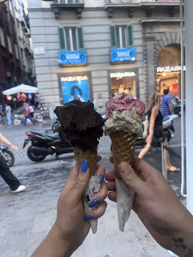Not many great places to sit nearby as is a busy shopping street (before the icecream melts) we had to sit on a dirty bench on a side street opposite someone smoking crack (who then harassed us) but I guess that’s the Naples charm 🤷♀️ maybe try their other locations for more peaceful...