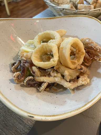 Read moreForse le aspettative erano un po' troppo alte, in effetti sarebbero tre stelle e mezzo, ma assolutamente non arriviamo a 4. Tutto buono, ma niente che ti faccia dire wow. Antipasti: Bruschette con pomodorini, polipo con kiwi, baccalà fritto, polpette al sugo, crocche', zeppoline alle alghe, Primi, centrotavola di l'artista, il suo piatto forte, per me mancava un po' di sapore proprio sulla quota di lardo. Spaghetti aglio olio colatura di alici e tarallo napoletano, qui la pasta leggermente avanti e mancava qualche goccia di colatura in più. Spaghetti cacio e pepe con tartare di salmone, la cacio e pepe un po' troppo granulosa. Dolci acqua vino caffè 33€ circa a persona. Da dire che tutti e tre i primi erano assaggi e non a porzioni singole. Servizio cordiale e disponibile...