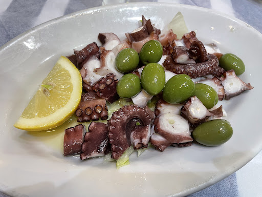 Read moreWe came without a reservation and got a seat. The waiter insisted on letting us sit under the plastic pavilion, but we wanted a table inside. And it paid off because the atmosphere is very lovely and we wanted to experience the typical Italian flair. An senior gentleman was opening mussels (probably 40 kg) and we saw the cooking going on. The staff were authentic. We had a small bottle of house wine and mineral to drink. For appetizers we had octopus (Polpo all insalata in barchette) with olives and tomatoes and melanzani with olives. Both were very delicious, the olives were a little too salty for our taste. For the first course I had ordered linguine con scampi, but I think I got spaghetti ai frutti di mare. It was still superb, and the sauce was very delicious. I even got extra bread at the end for the last of the sauce (“scarpetta”). Delicious. The second dish was frutti di gamberi e calamari, also excellent. Unfortunately, the courses came a little too quickly one after the other, so we had a lot of plates at the table. So far the best meal in Naples, highly recommended, if only because of the authentic...