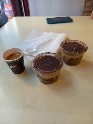 We went to try vegan tiramisu and it was good but although I wouldn't call it a tiramisu. More like dessert à la tiramisu and there was hardly any coffee flavour and a lot of cocoa instead. I asked for coffee with soy milk and got espresso with a little bit of milk and technically it was coffe with milk all right, just not what I expected and it wasn't that good anyway. The dessert was really tasty but I was disappointed with it, don't call it tiramisu, because it's not tiramisu. The inside was uninviting and shabby. The toilet was horrible, there was no water or soap and I couldn't find a light switch and there were cleaning utensils...