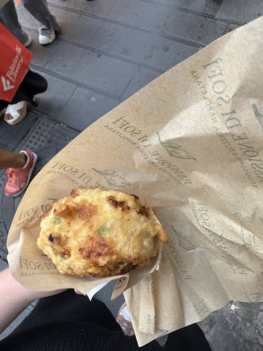 We grabbed a delicious fried pizza (complete one) and a frittatina (with eggplants) plus a montanara.
