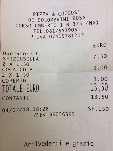 Read moreWe wanted a margarita pizza that was clearly posted as €4.50 on the menu but they tried to charge us €7 for the pizza and claimed it was because we wanted it to go so we said okay we’ll eat here instead. Then they tried to give us two pizzas but we just wanted one. Then they charged us €7.50 when we left with no receipt (every other restaurant throughout Naples gave us a receipt) even though all we had was a pizza no drinks/water. So very sketchy with pricing but pizza was good. Just wish they weren’t so difficult and had more transparency...